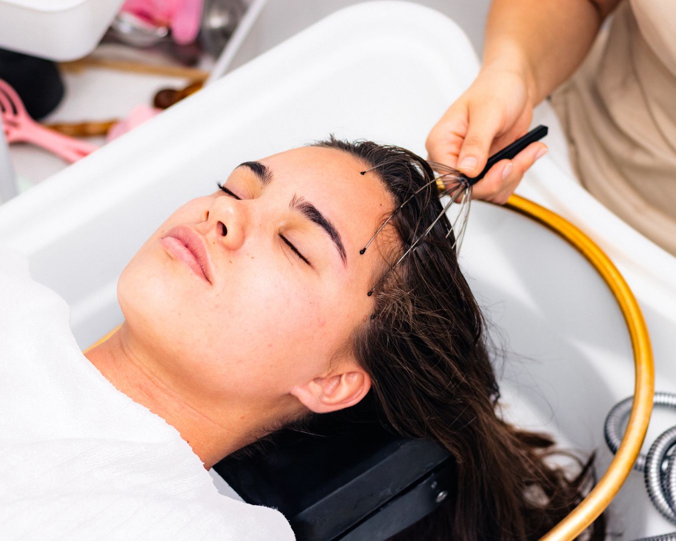 Temeljna njega koja uključuje masažu vlasišta, bez korištenja eteričnih ulja ili dodatnih tretmana.