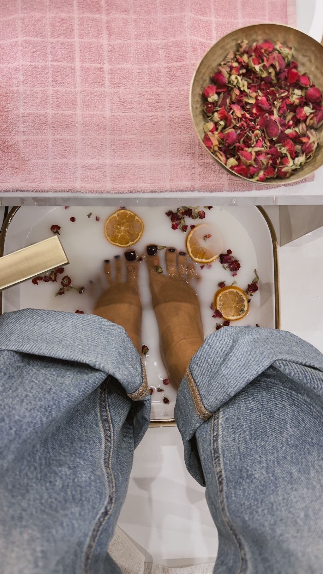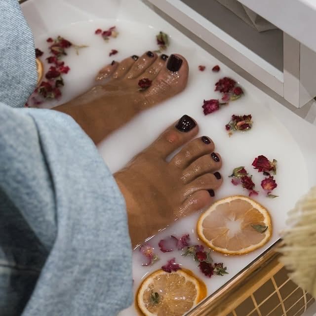Mlječni pedikir sa ružama i dehidriranim narandžama
